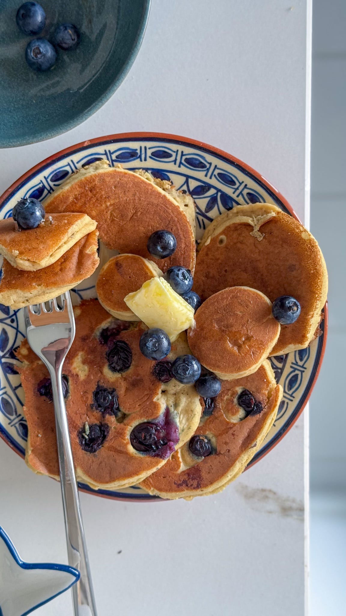 But some mornings (especially midweek) I want a pancake that’s light, naturally sweetened, and quick to make. And now that blueberries are in season, I find myself craving the combo: light pancakes + blueberries + butter + maple syrup.