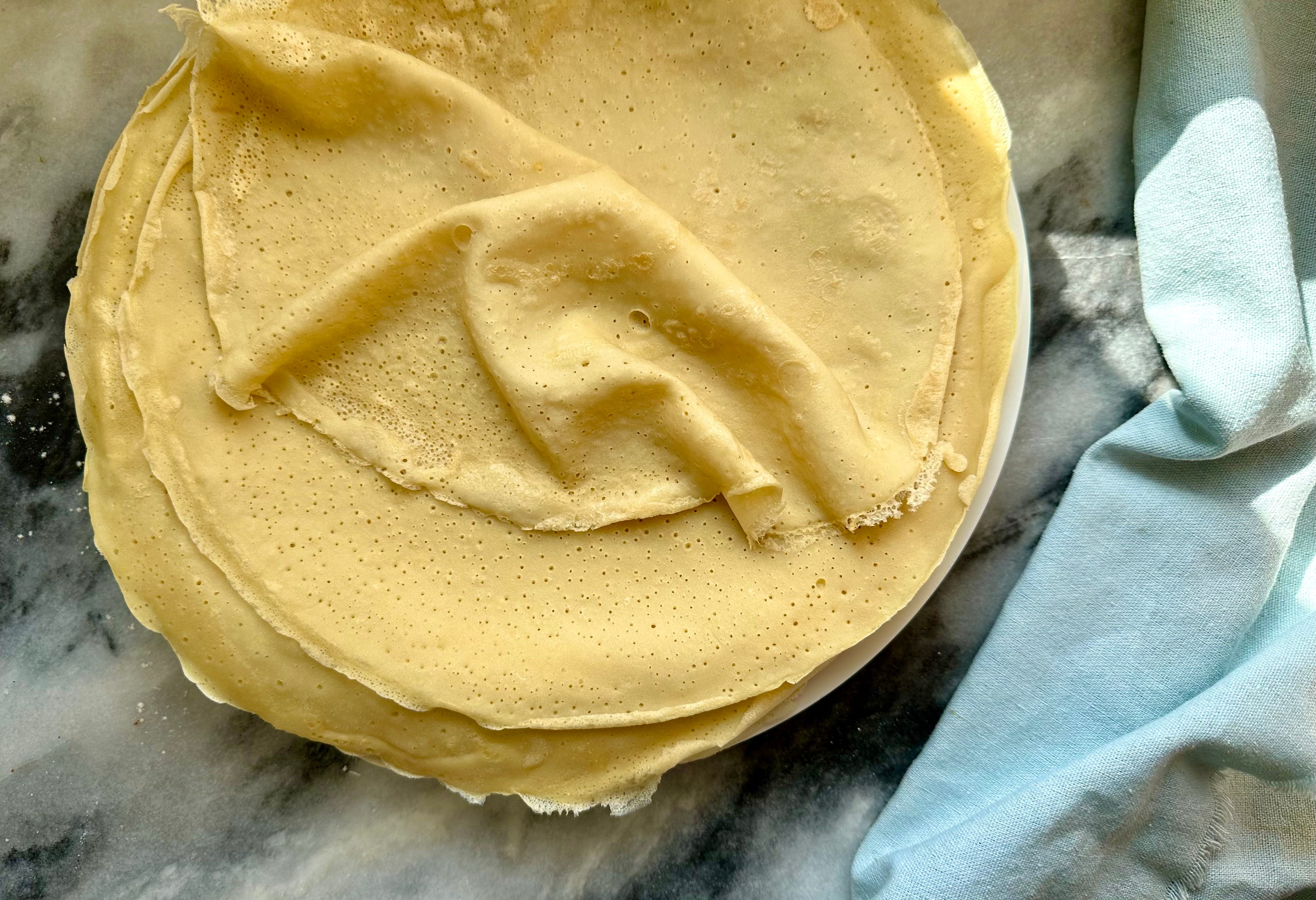 Stack the crepes onto a plate, and serve with your favorite topping.
